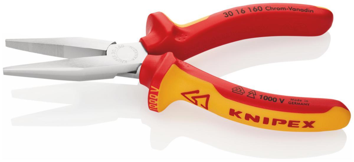 Pihdit kromattu. Kahvat eristetty monikomponentti kahvakuorilla. VDE-tarkistettu. Muoto :pitkät, pyöreät leuat, sileäksi hiotut tartuntapinnat.