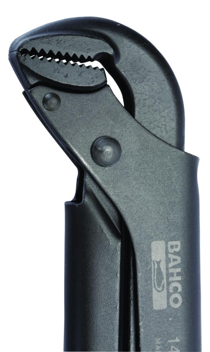 DIN 5234. Ergonomiset putkipihdit.. Viimeistely: mustaoksidoitu, ruostesuojattu.. Materiaali: korkeaseostettua erikoisterästä, karkaistu.Induktiokarkaistut ohuet leuat. Toinen kahva on karkaistua terästä, jossa ergonominen, pehmeä pinta. Hampaat ovat sisäpuolella pienemmät ja suurenevat kärkeä kohti. Alemmassa kahvassa on esto sormien puristuksen estämiseksi. Voidaan käyttää lukituslaitteen 142-3 kanssa.