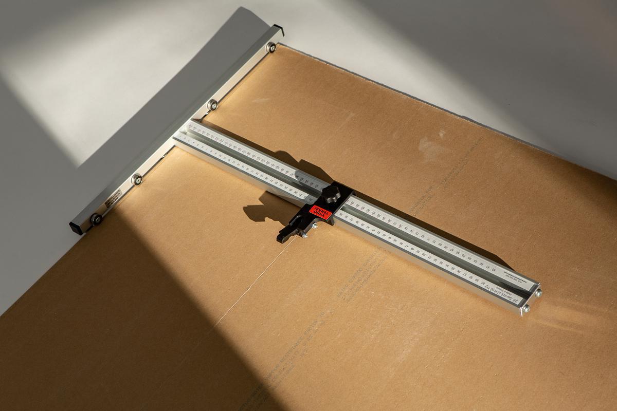 Kipsilevyleikkurin käyttö nopeuttaa merkittävästi levyn leikkaamista. Laite toimii samalla mittana, ohjaimena ja leikkurina. Leikkurin runko on valmistetu alumiinista ja sen paino jää alle kilon. Rungon kokonaispituus on 66cm ja ohjarin pituus 50cm. Mitta asteikolta voi valita halutun levyn leveyden tai vaihtoehtoisesti poistettavan kaistaleen mitan. Luistin lukitaan haluttuun kohtaan sormiruuvia kiristämällä. Terä sijaitsee luistimessa ja sitä suojaa käännettävä teränsuojus. Uudessa versiossa on muovirullien tilalla pölysuojatut laakerit sekä laakeroitu terä!