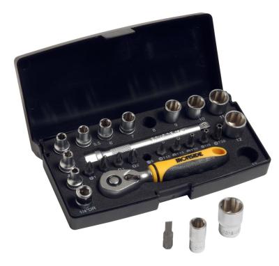 Hienomekaanikon sarja mattakromattua kromi-vanadiiniterästä. 48-hampainen pieni räikkäkahva ja Super Lock -hylsyjä, jotka säilyttävät kuusikulmaisen muodon. Toimitetaan muovirasiassa, 155 x 85 x 32 mm. (LxSxK)