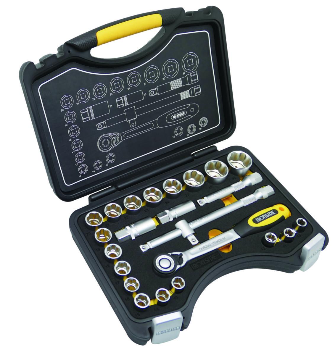 1/2" sarja mattakromattua kromivanadiiniterästä. Räikkäväännin peukalosäädöllä, 72 hammasta. Flankdrive-kuusiohylsyt. Toimitetaan kestävässä ja pienikokoisessa muovisalkussa (345 x 270 x 85 mm), jossa EVA-vaahtomuovia ja metallisoljet.