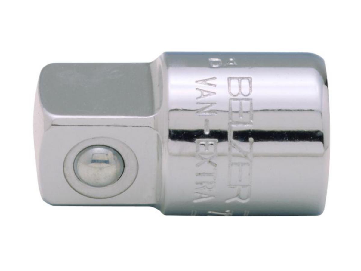 1/4" nelikulmainen kiinnitysreikä. 3/8" neliötappi. Kromattu. Pituus 25 mm.