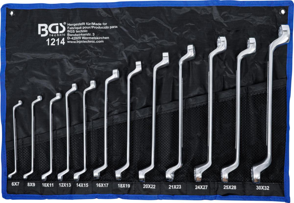 Kuumataottu. Kromipinnoitetut, kiillotetut leuat. Syva offset-lenkki. Profiili: 12 kulmainen. Pakattu tetron-lompakkoon. Sisältää seuraavat työkalut: Lenkkiavain, syvät offset päät: 6 x 7 mm. Lenkkiavain, syvät offset päät: 8 x 9 mm. Lenkkiavain, syvät offset päät: 10 x 11 mm. Lenkkiavain, syvät offset päät: 12 x 13 mm. Lenkkiavain, syvät offset päät: 14 x 15 mm. Lenkkiavain, syvät offset päät: 16 x 17 mm. Lenkkiavain, syvät offset päät: 18 x 19 mm. Lenkkiavain, syvät offset päät: 20 x 22 mm. Lenkkiavain, syvät offset päät: 21 x 23 mm. Lenkkiavain, syvät offset päät: 24 x 27 mm. Lenkkiavain, syvät offset päät: 25 x 28 mm. Lenkkiavain, syvät offset päät: 30 x 32 mm.