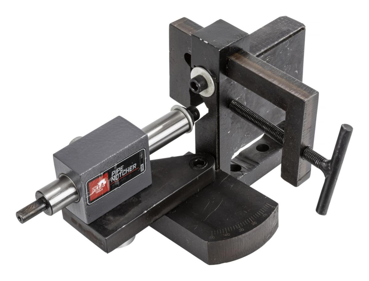 Putken loveamiskone, joka pystyy käsittelemään teräksestä, ruostumattomasta teräksestä ja alumiinista valmistettuja ulkoputkia halkaisijaltaan 63,5 mm (2-1/2"). Muista käyttää laadukkaita reikäsahoja.