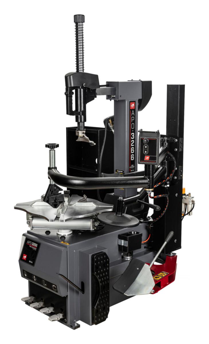 Rengaskone, joka soveltuu suuremmille vanteiden halkaisijoille ja matalaprofiilisille renkaille. Kolmen apuvarren avulla voit helposti vääntää matalaprofiiliset renkaat paikalleen vannetta vahingoittamatta. Monet edut - pneumaattisesti ohjattu kallistettava pilari - tukeva jalusta ja pylväs - vaaka- ja pystysuuntaisen varren samanaikainen lukitseminen - valetut teräspolkimet - tekevät tästä koneesta sopivan korjaamolle ja harrastustallille. Rengaskone toimii 1-vaihevirralla. Rengaskoneen korkeus on 185 cm asennettuna. Suosittelemme, että rengaskoneen kanssa käytetään vähintään 4 hv:n kompressoria. Paineilma ohjaa kaikkia koneen toimintoja paitsi pöydän pyörimistä.