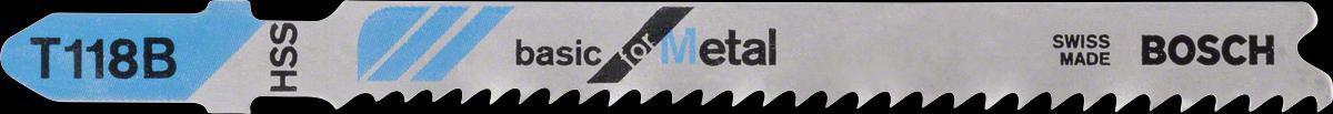 T 118 B Basic for Metal ‑pistosahanterä metallin suoraviivaiseen sahaukseen. Sen jyrsitty ja haritettu hammastus sopii erinomaisesti sahaukseen ilman erityisvaatimuksia. Täysin karkaistu korkealuokkainen HSS-terämateriaali soveltuu standardivahvuisten, rei'ittämättömien metallilevyjen sahaukseen. Lisäksi terän kapea hammasväli (1,9–2,3 mm) sahaa erilaisia, 2,5–6 mm:n paksuisia metallilevyjä. Käyttöön sellaisten pistosahojen kanssa, joissa on T-Shank-kiinnitysjärjestelmä.