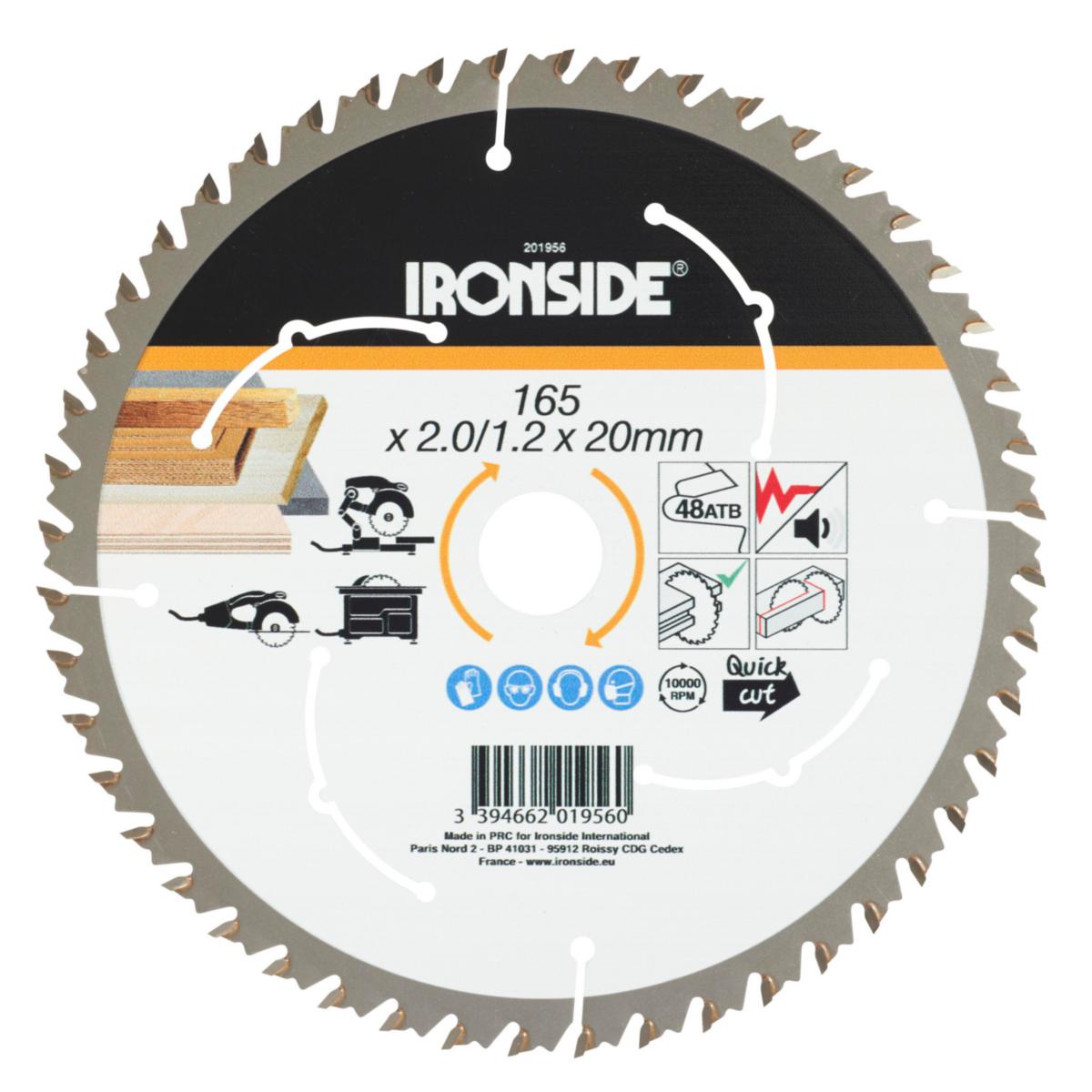 Ironsiden pyörösahanterät on suunniteltu tuottamaan tarkat, siistit leikkuut kaikissa puulajeissa. Valmistettu teräslevystä, 65 Mn karkaistu teräs (40-46 HRC) tuottaa tiukemmat toleranssit, mikä varmistaa pidemmän käyttöiän ja tarkkuuden. Laajenemisurat vähentävät tärinää käytön aikana, mikä vaimentaa melua ja vähentää lämmönkehitystä. Suunniteltu havupuuhalkojen, lehtipuiden, käsittelemättömien lastulevyjen, runkolautojen ja vanerin karkeaan katkaisuun. Korkealaatuiset hiotut kovametallihampaat. Suurin pyörintänopeus (RPM): 10 000. Hammasmuoto: ATB.