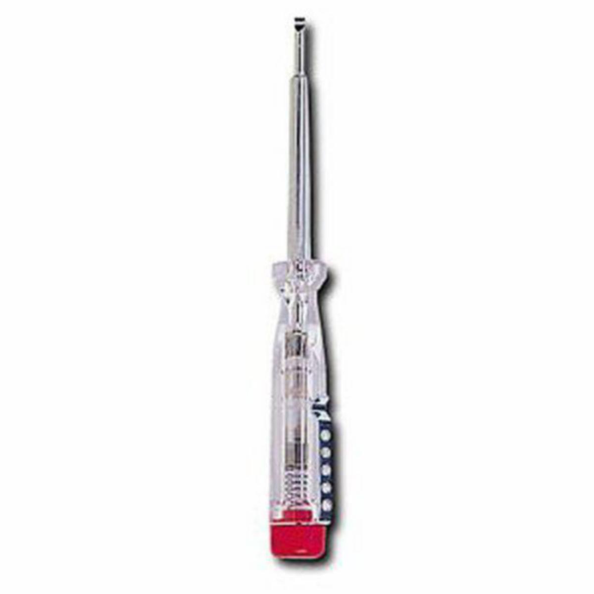 Eristetyllä terällä varustettu 100-250V jännitteenkoetin. Varustettu klipsillä.
