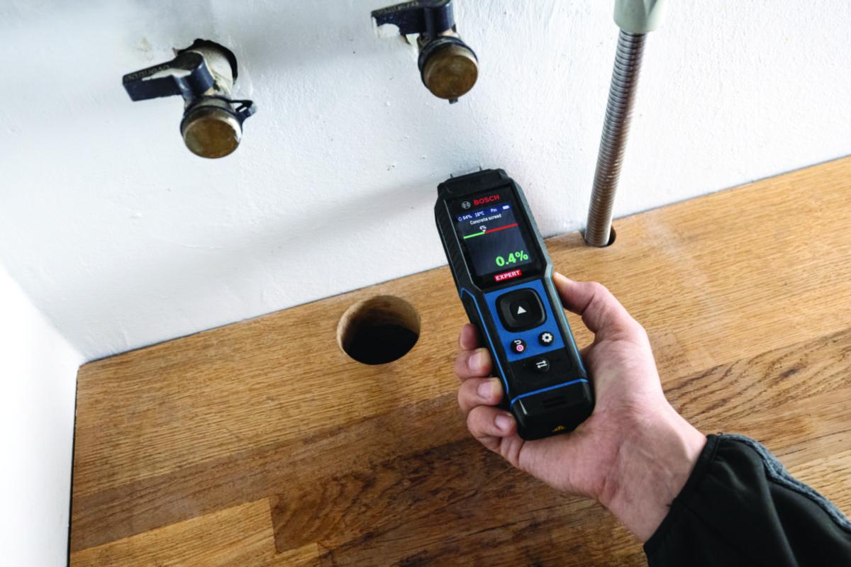 EXPERT EXMM3-17 on Boschin huippuluokan kosteusmittari, jossa on invasiivinen piikkianturi ja ei-invasiivinen tyynyanturi sekä lämpö- ja kosteusmittaus ympäristöolosuhteiden seurantaan. IP65-suojattu, iskunkestävä ja kumipäällysteinen runko takaa kestävyyden.
