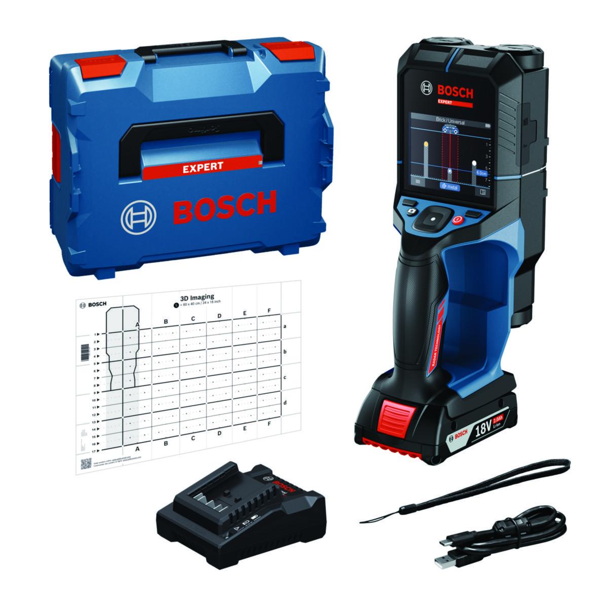 Bosch-tutkateknologia hyödyntää tekoälyä, jonka avulla putket, johdot ja raudoitustangot löytyvät helposti ja turvallisesti minimoiden vahinkoriskit. 18 V:n akku takaa pitkän käyttöajan ilman keskeytyksiä. Kolmiulotteinen 3D-kuvantamistoiminto tarjoaa selkeän näkymän seinäalueista ja piilotetuista kohteista.