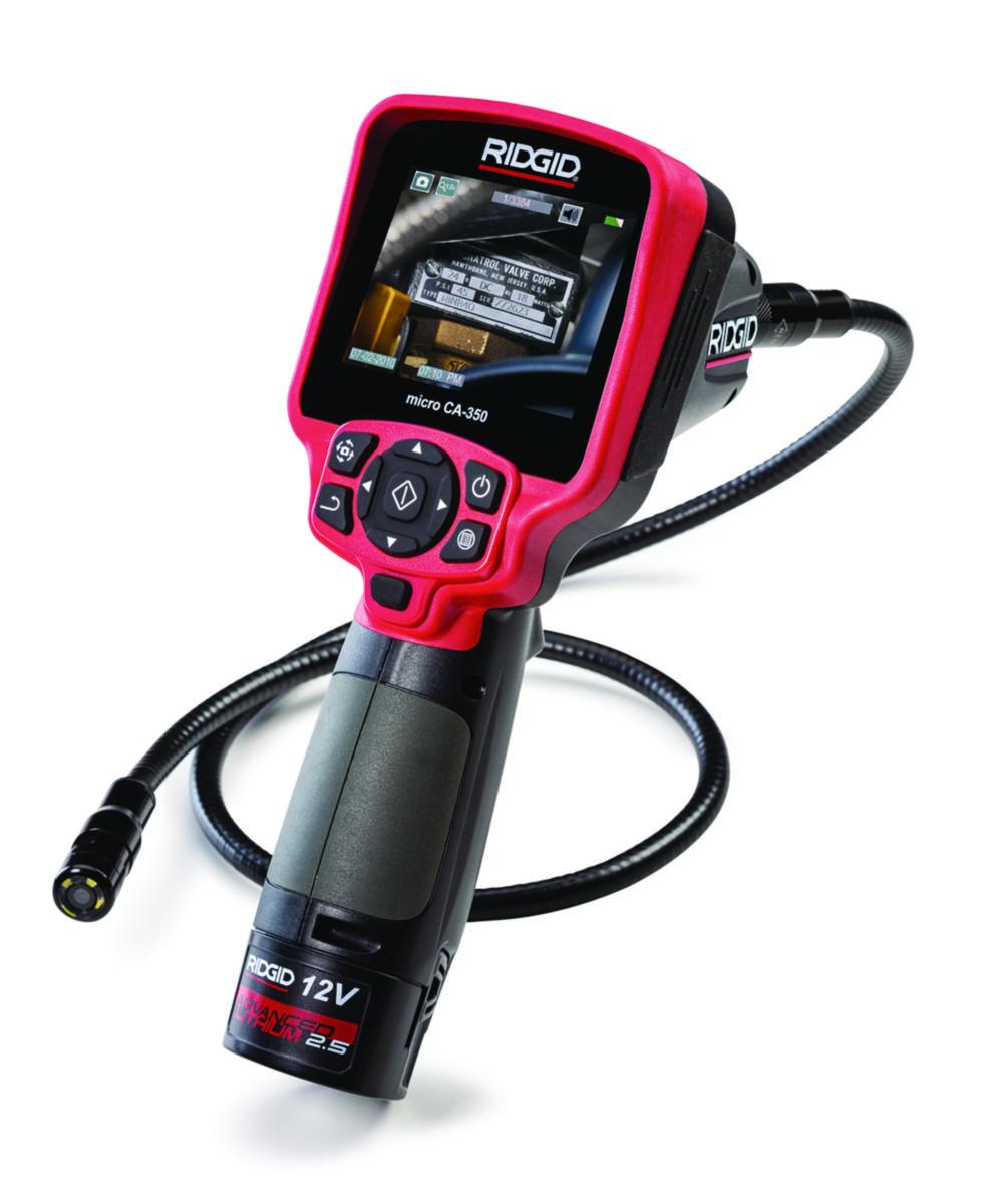Tarkastus ja dokumentointi on helppoa RIDGIDin micro CA-350 -tarkastuskameralla, joka on nyt varustettu 12 voltin akulla. Helppo still-kuvien ja videoiden tallennus vaikeapääsyisten alueiden ongelmakohdista. Ladattava 12 voltin litiumioniakku pidentää käyttöaikaa pitkään kestävissä tarkastuksissa. Miellyttävä pistoolikahvamuotoilu, iso näyttö ja helppokäyttöinen liittymä. Pimeiden tilojen valaisu vesitiiviissä alumiinisessa kamerapäässä olevalla 4 kirkkaalla LEDillä. Täydellinen näkymä kuvankäännön, digitaalisen zoomauksen ja muiden lisätoimintojen ansiosta.