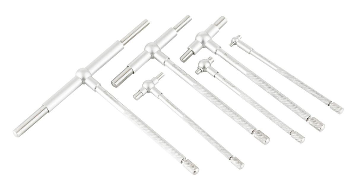 Teleskooppinen mittatulkkisarja 8-150 mm. Kahden pisteen mittaukseen. Itsekeskittyvä. Mattakromattu pinta. 6 kpl/sarja. Tarkkuus ± 0,02 mm.