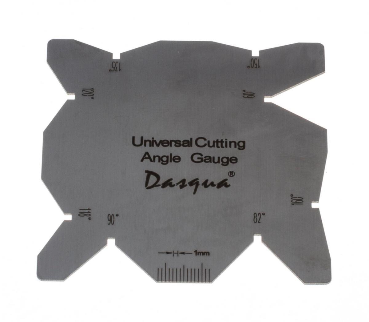 Käytetään kierreporien teroittamiseen. Valmistettu kiillotetusta ruostumattomasta teräksestä. Mittaa kulmat 60, 82, 90, 118, 120, 135, 150 ja 160° tarkkuudella +/- 0,5°. Helposti tarkistettavat poranreiän ja senkkausupotusten kulmat. Koko 80x80 mm, 1 mm paksu. Pakattu tyylikkääseen koteloon.