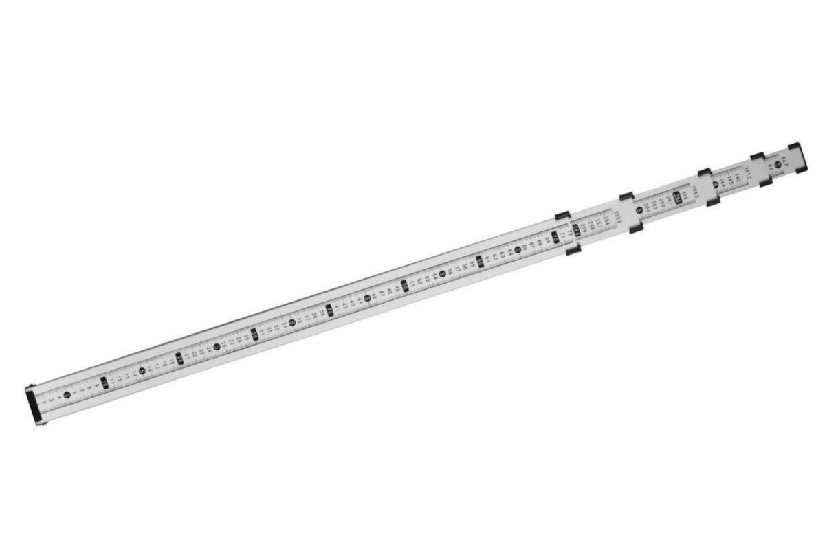 Vakaa teleskooppimittaussauva jopa 500 cm, jossa on selkeä mm / cm-asteikko toisella puolella ja dm-asteikko toisella. Mukana kotelo.