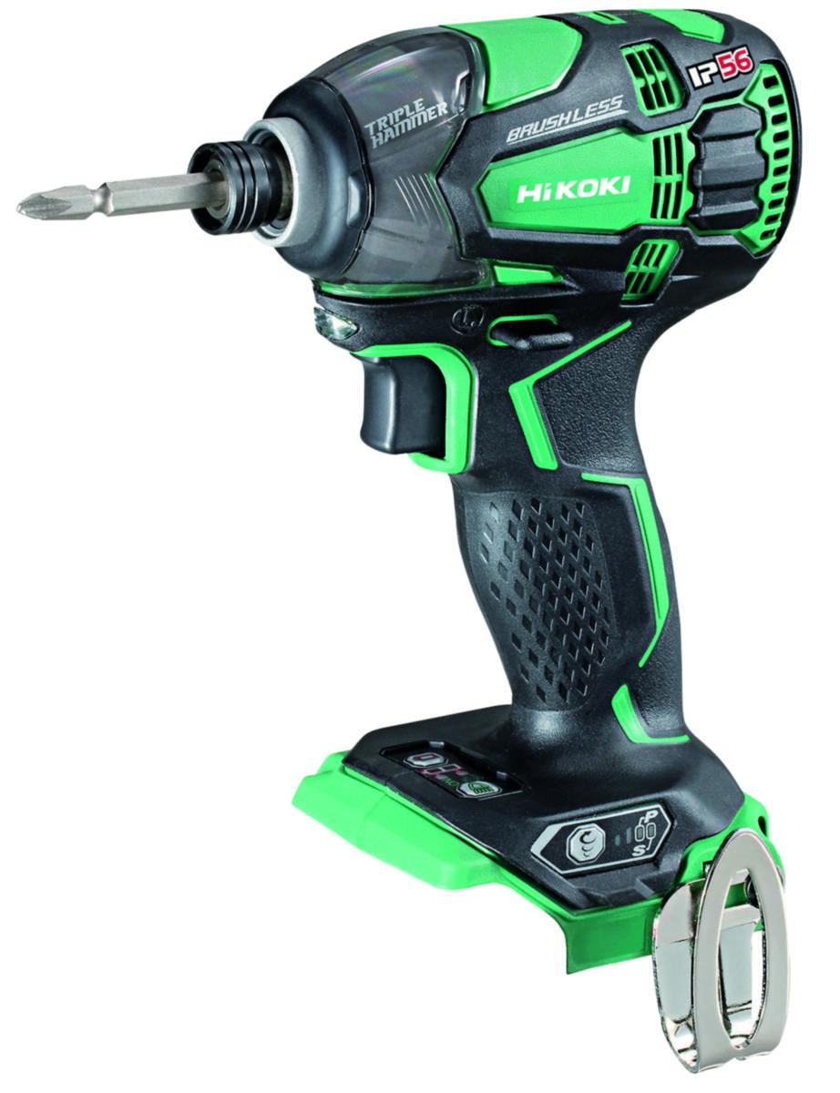 Moottorijarru. HPS-ylikuormitussuojaus (Hitachi Protection System). LED-valo. Akkuindikaattori akun tilan seuraamiseen. Vyökoukku ja ranneremmi. Uusi harjaton moottori! Antaa jopa 30% pidemmän käyttöajan ja lähes kaksinkertaistaa koneen käyttöiän ja huoltovälit verrattuna perinteisiin moottoreihin