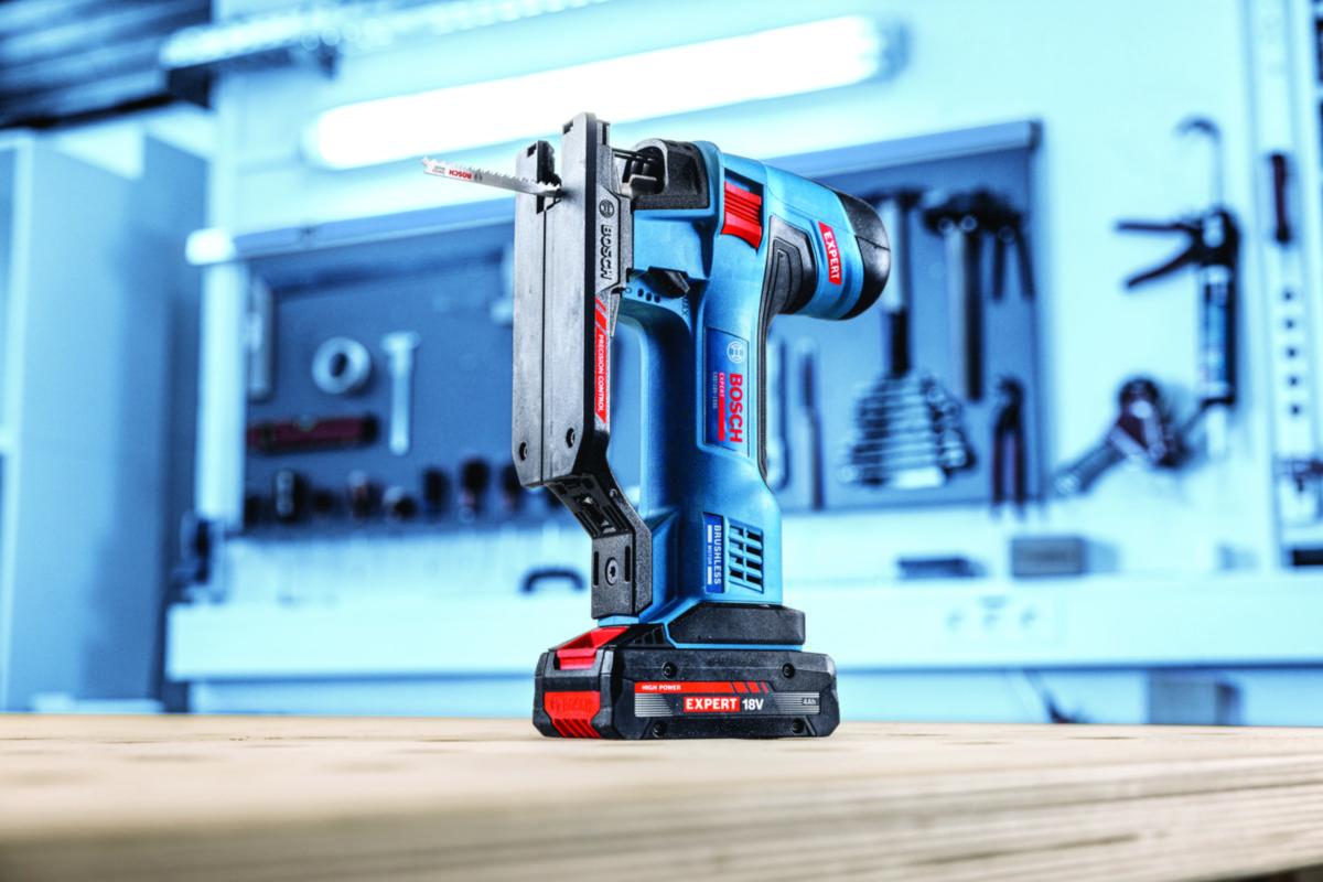 Terän ohjain estää taipumisen myös jyrkissä kaarissa. 360° otekehä helpottaa työkalun hallintaa eri kulmista, myös ylösalaisessa sahauksessa. Drop Control -toiminto lisää turvallisuutta pysäyttämällä moottorin välittömästi, jos työkalu putoaa.