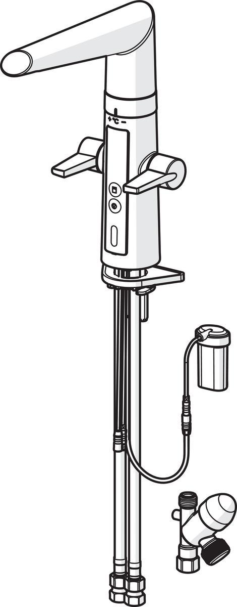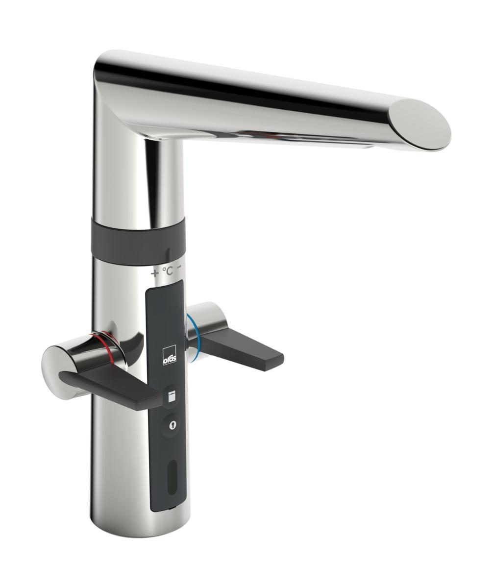 Älykäs keittiöhana, jossa EasyGrip-kahvat kuumalle ja kylmälle vedelle, kosketusvapaa toiminto, korkea juoksuputki, poresuutin ja automaattinen pesukoneventtiili. Kuuman ja kylmän veden virtaama säädetään erillisistä vivuista. Juoksuputken kääntymiskulma on 120° (mahdollista rajoittaa 60° tai 80°). Kosketusvapaatoiminto avataan viemällä kädet tunnistusetäisyydelle. Kosketusvapaan toiminnon veden lämpötila säädetään kääntämällä hanan ja juoksuputken välissä olevaa säätörengasta. Kosketusvapaa toiminto on helppo ottaa käyttöön/pois käytöstä. Pesukoneventtiili avataan painonapista ja se sulkeutuu automaattisesti säädetyn ajan - neljän tai kahdentoista tunnin kuluttua (yhdellä painalluksella pesukoneventtiili on auki 4 tuntia ja viiden sekunnin painalluksella 12 tuntia). Paristokäyttöinen, 3 V. Hanassa on roskasiivilät ja joustavat kytkentäputket.