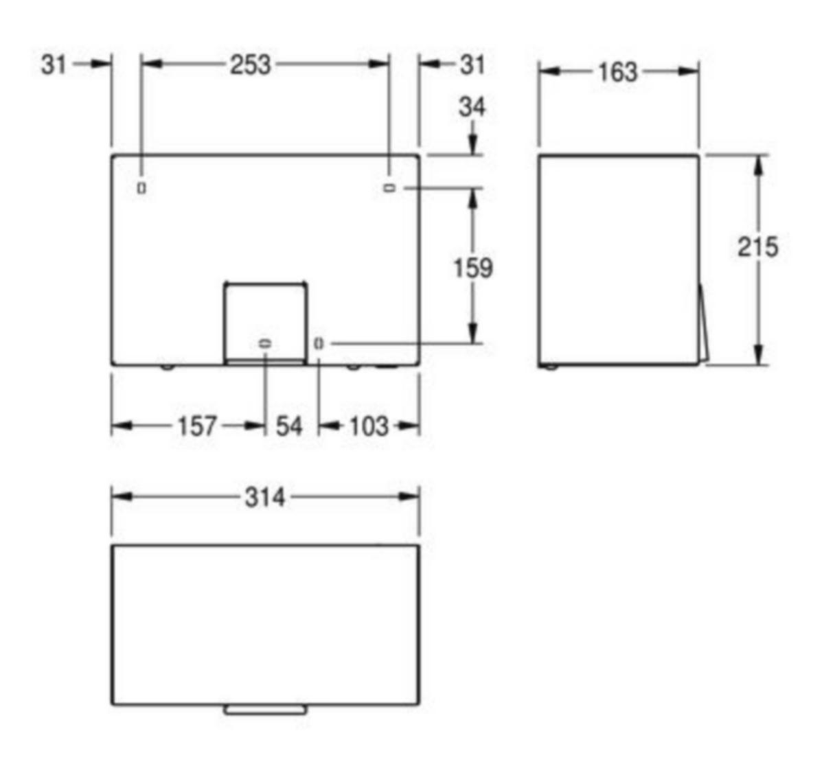 Seinälle kiinnitettävä kosketusvapaa elektroninen käsienkuivaaja, ruostumatonta terästä, satiinipinta, materiaalin vahvuus 1,2 mm, infrapunatunnistin kosketusvapaata toimintoa varten, tunnistimen toimintaetäisyys säädettävissä välillä 10-30 cm. Kaapeli ja pistoke ei kuulu toimitukseen. Mitat 314 x 215 x 163 mm (L x K x S) Syöttöjännite 230 V, 50 Hz Kok. Teho 2200 W Lämmitysteho 2100 W Moottori 100 W 2850 kier./min Ilmamäärä 274 m³/h Ilman virtausnopeus 15,5 m/s