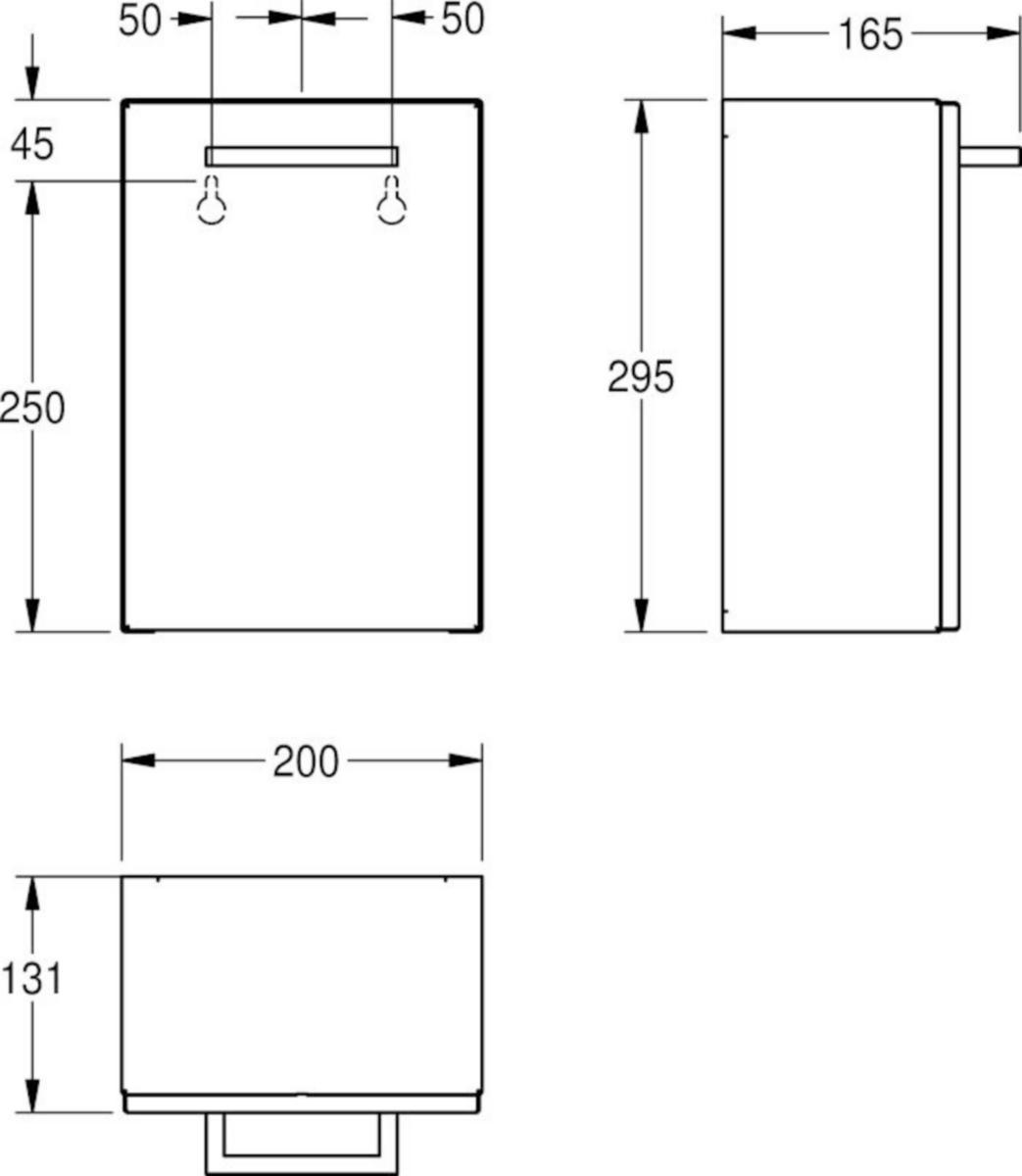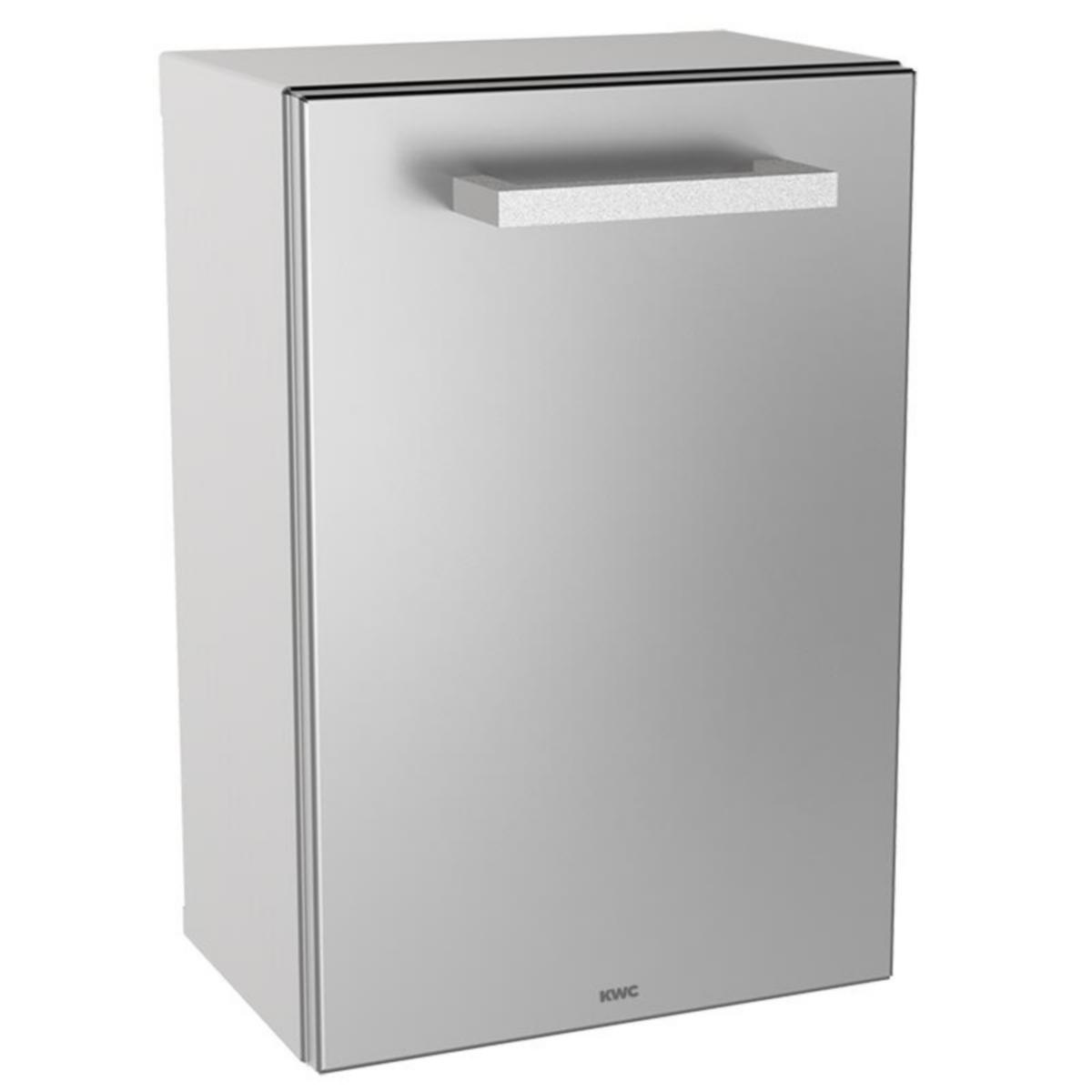 Hygieniajäteastia pinta-asennukseen, ruostumatonta terästä, satiinipinta, materiaalin vahvuus 0.8 mm, etukansi taivutetuin reunoin, noin 3.7 litran vetoisuus, poistettava muovisäiliö sisäpuolella, mukana teräsruuvit ja tartuntaosat. Mitat 200 x 295 x 165 mm (L x K x S)