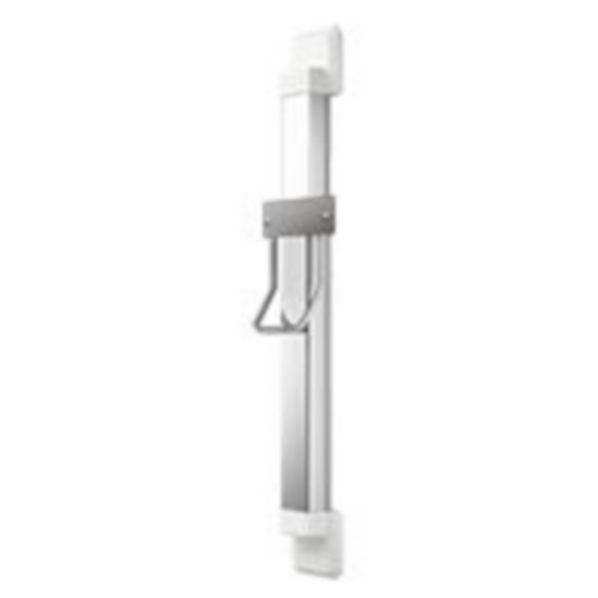 Korkeussäädin F5-kupuhiustenkuivaajalle, seinäasennukseen. 600 mm:n matkalla portaattomasti säädettävissä, vakiovoimainen rullajousi, ohjainkisko eloksoitua alumiinia. 4 mm vahvuinen kristallipeili, koko pinnaltaan liimattu, peitetyt, ilkivallalta suojatut johdot. Väriyhdistelmä hopea/päätykappaleet valkoiset. Mitat 250 x 1200 x 140 mm (L x K x S)