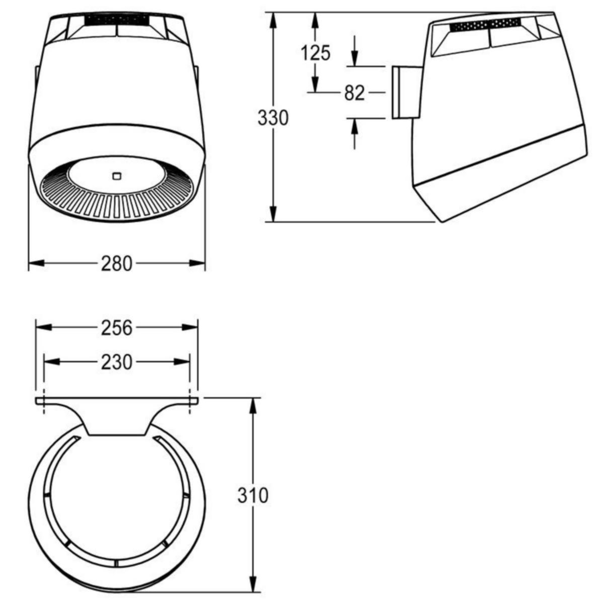 Kosketusvapaa F5-kupuhiustenkuivaaja seinäasennukseen, integroitu ioniteknologia, harjaton ja huoltovapaa EC-moottori. Sensorin toimintaetäisyys ja turvakatkaisu jatkuvan käytön yhteydessä säädettävissä lisävarusteena saatavalla kaksisuuntaisella kauko-ohjaimella. Termoplastista muovia, koteloinnin ja kiinnikkeen väri vaalean harmaa, kuivauskuvun väri sitruunankeltainen, 4 puhallinta lämpimän ilman tasaista jakautumista varten. Verkkojännite 230 V AC, 50/60 Hz Kokonaisteho 1300 W Lämmitysteho 1200 W Suojausluokka IP23 Ilmamäärä 190 m3/h = 53 l/s Ilman virtausnopeus 8 m/s Äänen voimakkuus 66 db (A) Mitat 280 x 331 x 307 mm (L x K x S)