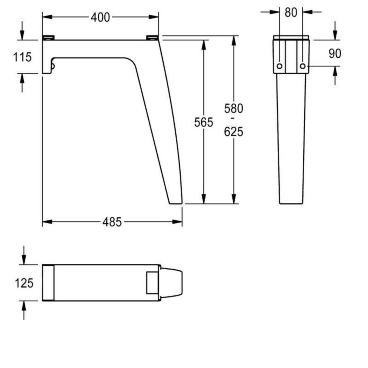 Kulmajalka FUTURA exklusiv -sarjapesualtaaseen. MIRANIT - komposiittimateriaalia, väri antrasiitti. Asennuskorkeus altaan yläreunaan 700 mm. Mitat 125 x 565 x 485 mm (l x k x s)