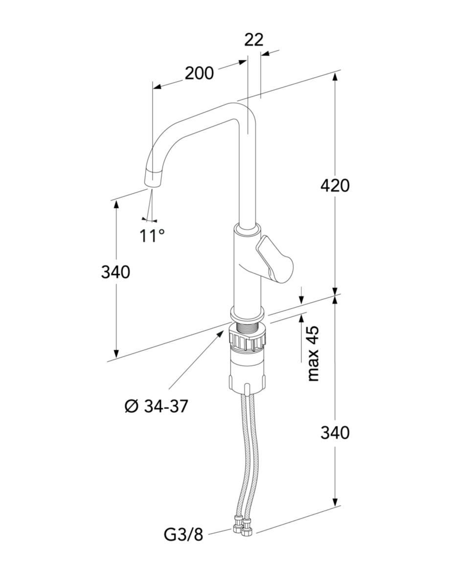 - Korkeus tasosta hanan suuttimen alaosaan: 340 mm