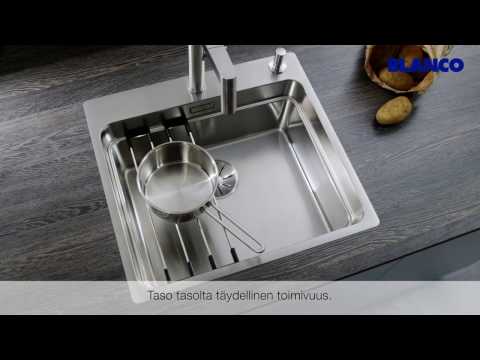 Blanco Etagon -altaan mukana tulevia monikäyttöisiä Etagon-kiskoja on kaksi kappaletta ja ne voi sijoittaa vierekkäin tai päällekkäin joko altaan välitasolle tai pöytätasolle. Monitoimikiskot on suunniteltu sopimaan altaan muotoiluun täydellisesti ja ne pysyvät tukevasti paikoillaan altaan välitasolla. Kiskoja on helppo liikutella ja ne kestävät jopa 180 C lämmön eli voit huoletta asettaa kuumankin kattilan kiskojen päälle, olivatpa kiskot sitten työskentelytason päällä tai altaan keskitasossa. Jos kiskot halutaan siirtää syrjään, pinoutuvat ne siististi päällekkäin ja kiskojen likaantuessa voit pestä ne astianpesukoneessa.