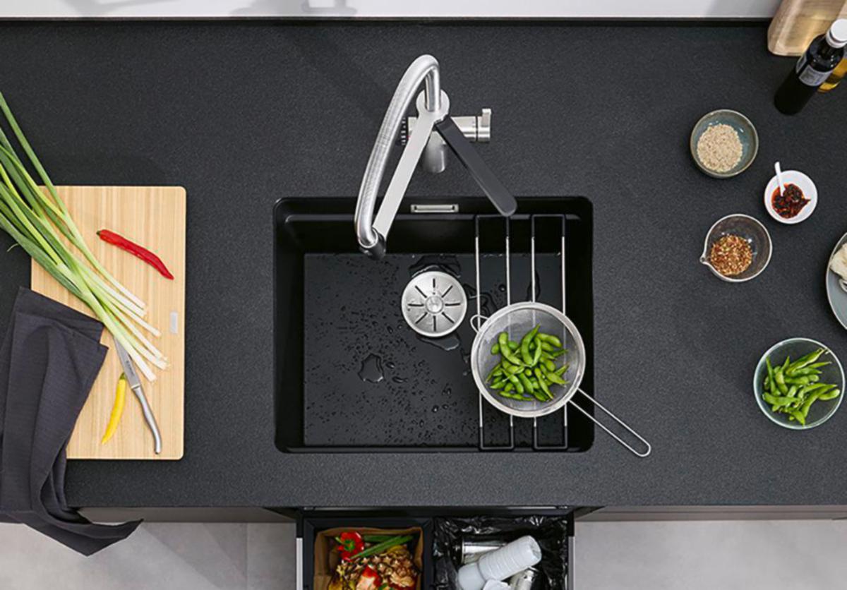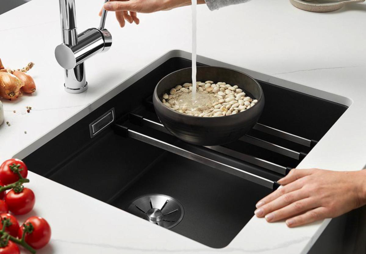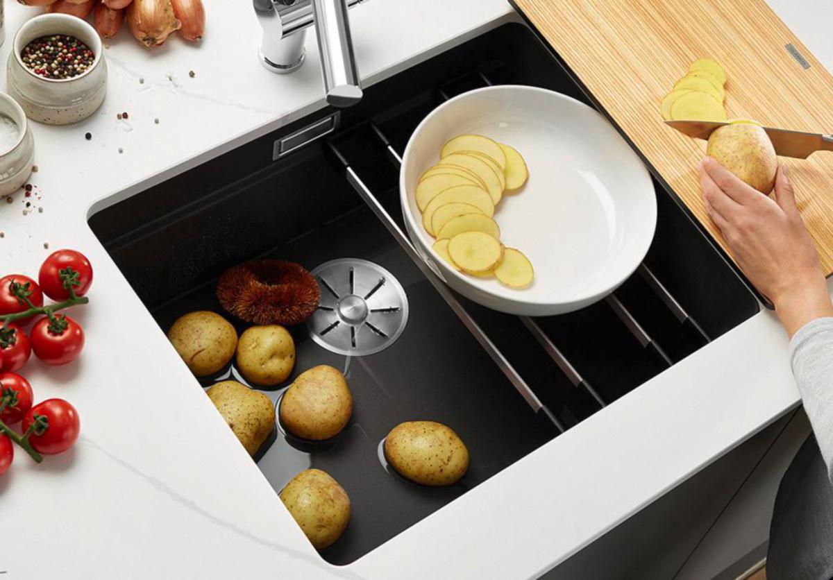 Sijoittamalla leikkuulaudan altaan ulkoreunojen päälle ja haluamasi astian sen viereen, joko altaan pohjalle tai keskitasanteelle Etagon-kiskojen päälle, saat näppärästi siirrettyä leikatut ruoka-aineet viereiseen astiaan ruuanvalmistusta varten. Etäisyys astiaan on aina optimaalinen, ruuanvalmistus nopeampaa ja työskentely leikkuulaudalla miellyttävää.