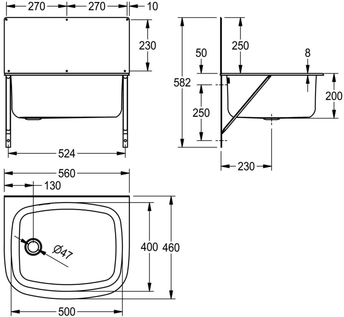 Altaan suuri koko on kätevä kookkaiden välineiden puhdistuksessa ja liotuksessa. Seinää suojaava taustalevy. Mitat 560 x 460 x 200 mm (L x K x S)