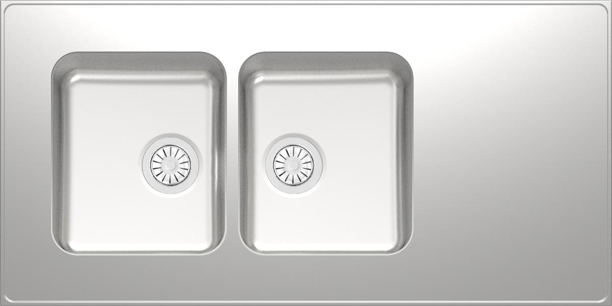 Stalan A-Seitsikko on varustettu kahdella tilavalla altaalla, joissa tiskaaminen sujuu huolettomasti. Minimikaappikoko 80cm. Vakiovarusteena koripohjaventtiili.