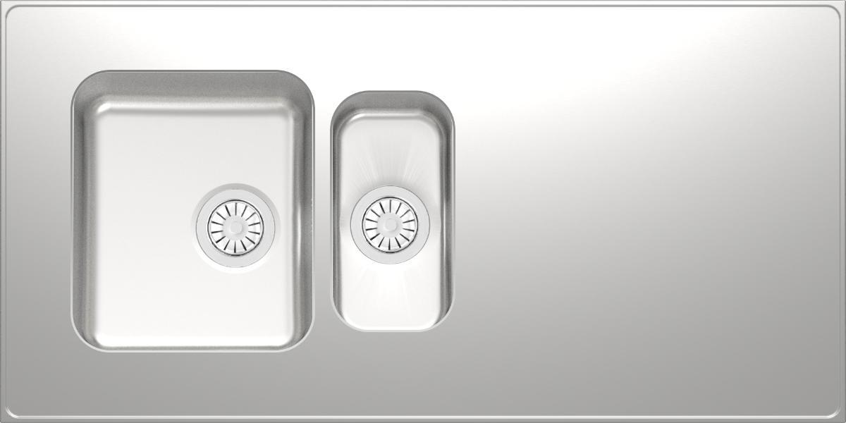 Pesupöydässä iso ja pieni allas. Pieni allas voi olla ison altaan oikealla tai vasemmalla puolella. Vakiovarusteena koripohjaventtiili.