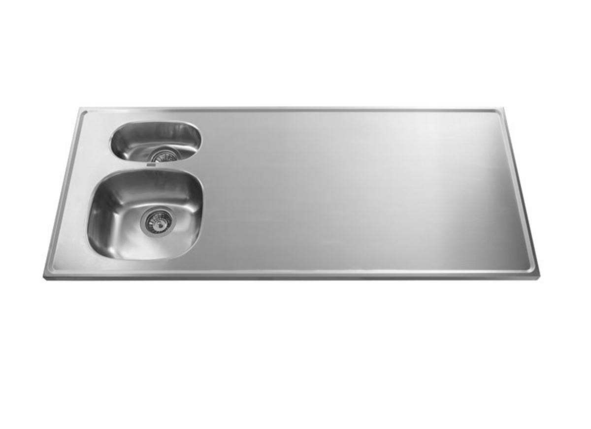 Ritva pesupöytä pellava pinnalla. Altaat vasemmalla. Pituus 800 mm, syvyys 600 mm. Alakaappi vähintään 400 mm. Altaiden mitat 305 x 335 x 140 mm, 290 x 155 x 120 mm. Jos allas pöydän päässä 400 mm kaapissa, S-mitan oltava 40 mm A-profiililla, minimi pituus 450 mm. Huomioi kätisyys. Kokonaismitta 800x600x140 (L x S x K)