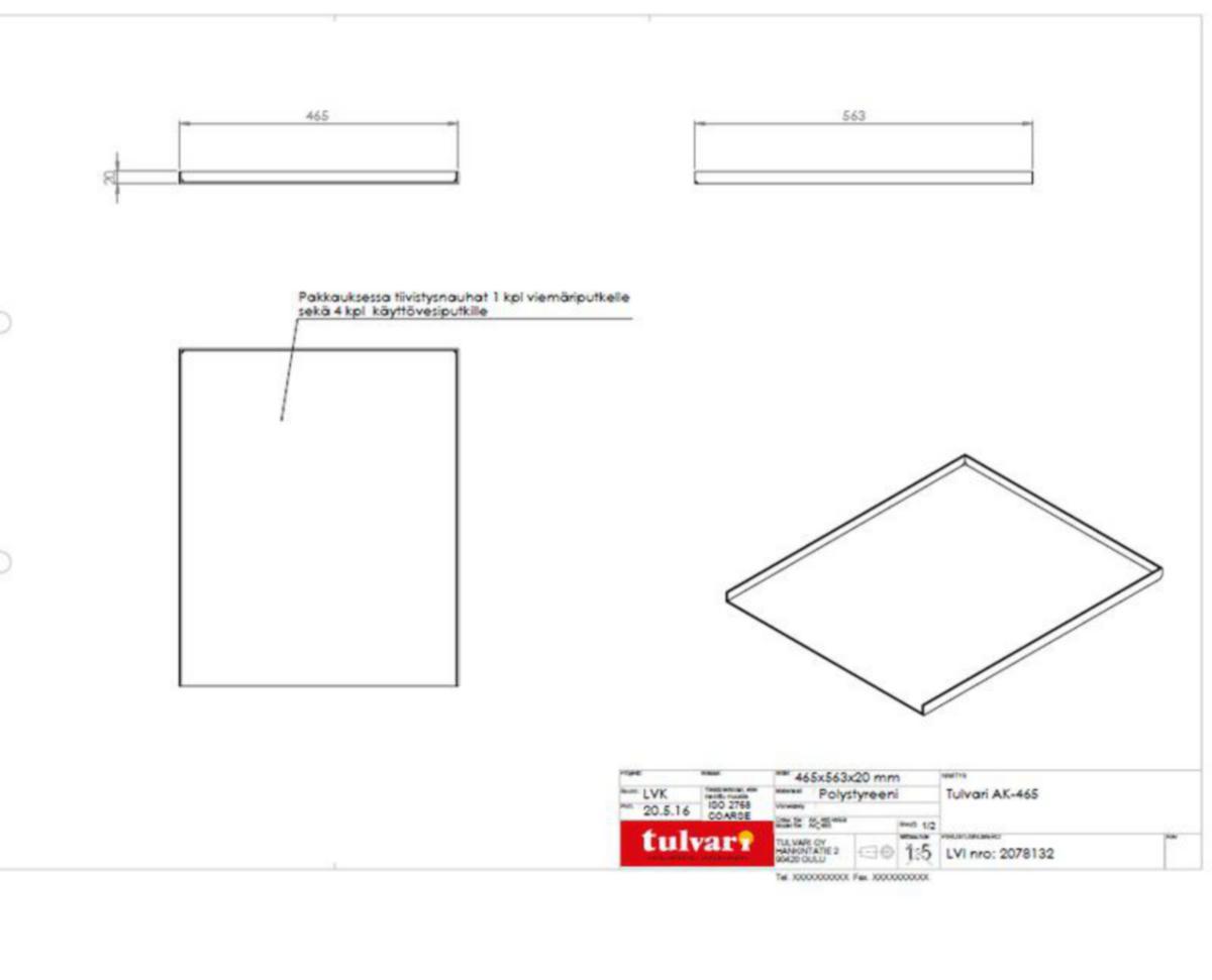50 cm leveän allaskaapin suojakaukalo, joka sisältää tiivistysnauhat 1 kpl viemäriputkelle sekä 4 kpl käyttövesiputkelle.