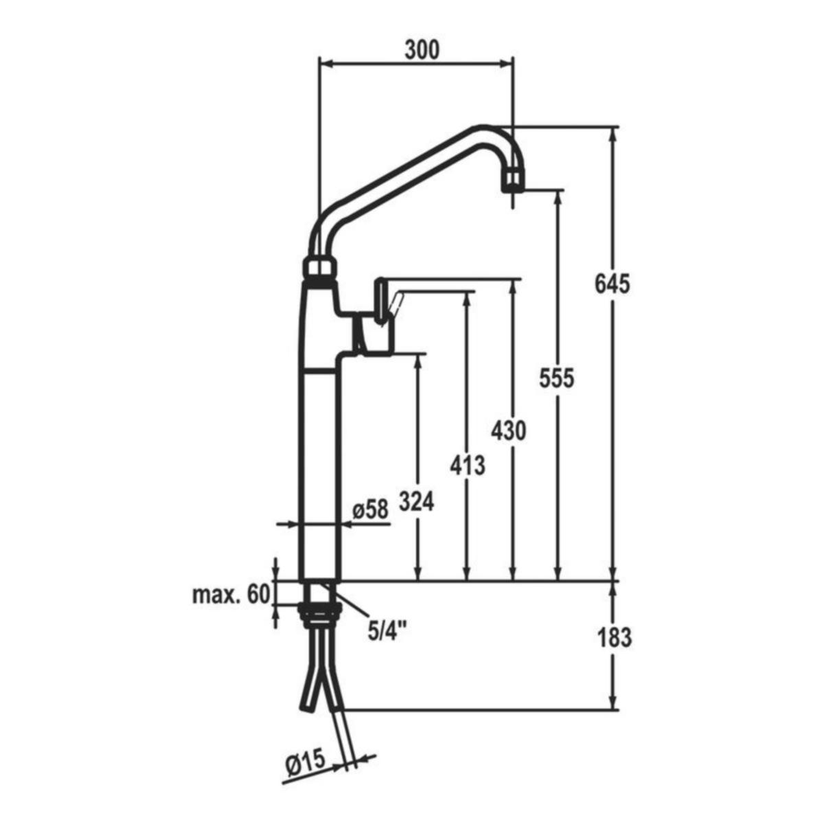 Pöytäasennettava 1-ote suurkeittiöhana, korkea.