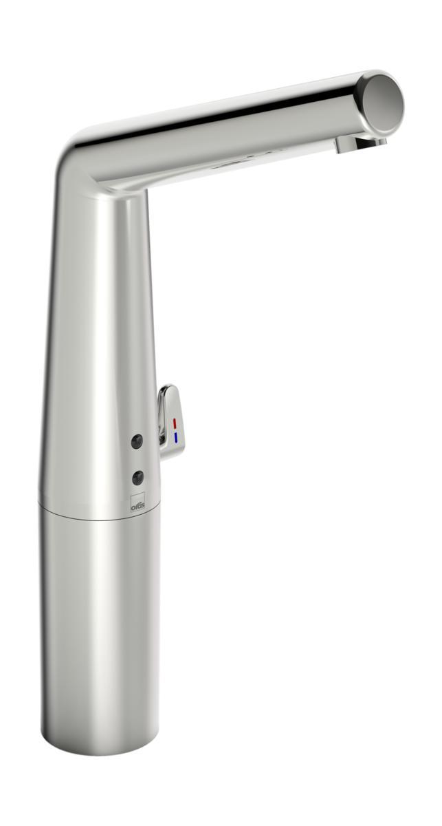 Kosketusvapaa pesuallashana, jossa lämmönsäätökahva. XL-koko. Hanassa on roskasihdit, yksisuuntaventtiilit, joustavat kytkentäputket sekä Autofocus-sensori, jolloin asennuksen yhteydessä hanaan ei tarvitse tehdä säätöjä. Bluetooth-yhteyden ansiosta hanan asetuksia on helppo seurata ja muuttaa. Impulssiohjattu magneettiventtiili antaa paristolle pitkän toiminta-ajan. Paristokäyttöinen 6 V.