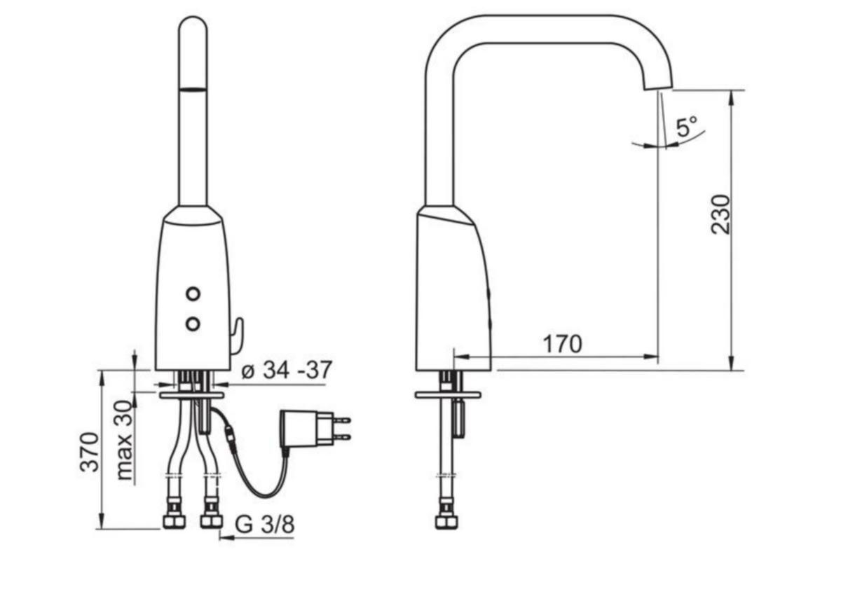 Vaihtoehtona: piiloasennettava virtalähde nro 199275, johon voidaan kytkeä maksimissaan 5 hanaa kerrallaan.