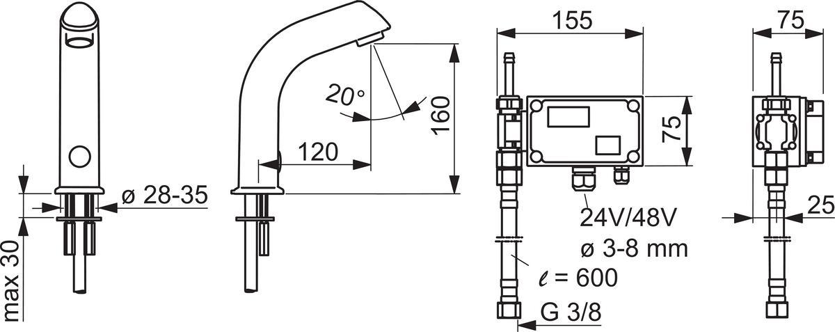 Kosketusvapaa pesuallashana esisekoitetulle vedelle. Bluetooth-yhteyden ansiosta hanan asetuksia on helppo seurata ja muuttaa, tunnistusetäisyyttä voidaan säätää myös suoraan hanasta. Sähköasennus 24/48 V, virtalähde hankittava erikseen: Oras-nro 290005 (pistotulppamuuntaja), Oras-nro 290004 (muuntaja).