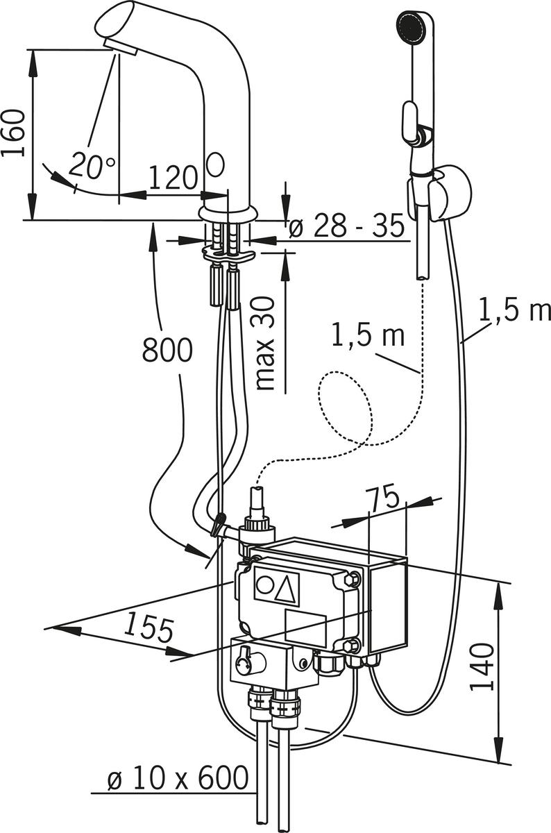 Kosketusvapaa pesuallashana jossa sekoitusventtiili ja Bidetta-käsisuihku. Hanassa on roskasihdit ja yksisuuntaventtiilit. Bluetooth-yhteyden ansiosta hanan asetuksia on helppo seurata ja muuttaa, tunnistusetäisyyttä voidaan säätää myös suoraan hanasta. Käsisuihkun ripustimeen on saatavana vaihtojohto 2 - 5 m (Oras-nro 197033/m). Tarvittaessa saatavana myös pidemmällä valokennokaapelilla (+20.00 EUR alv 0 %). Sähköasennus 24/48 V, virtalähde hankittava erikseen: Oras-nro 290005 (pistotulppamuuntaja), Oras-nro 290004 (muuntaja).