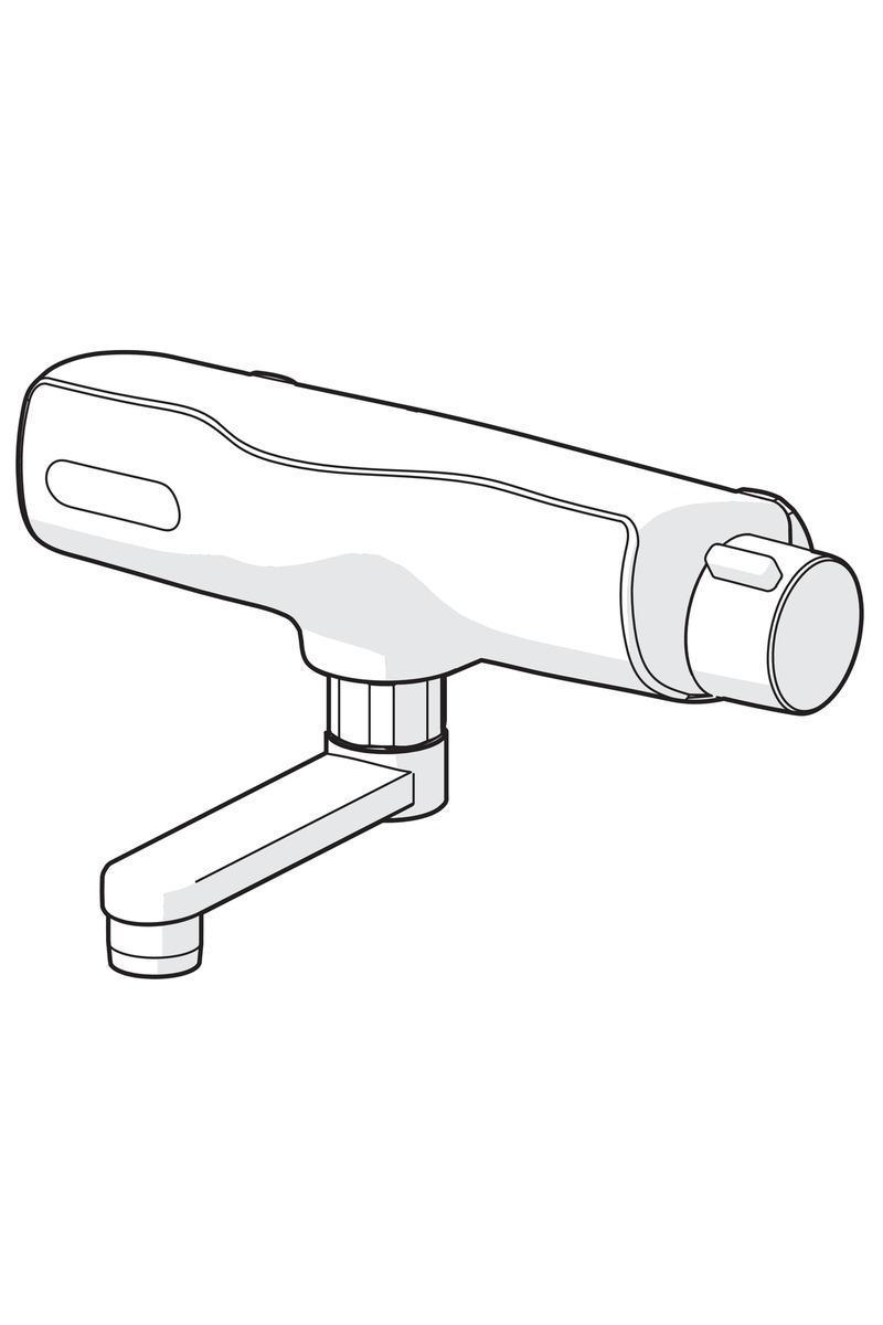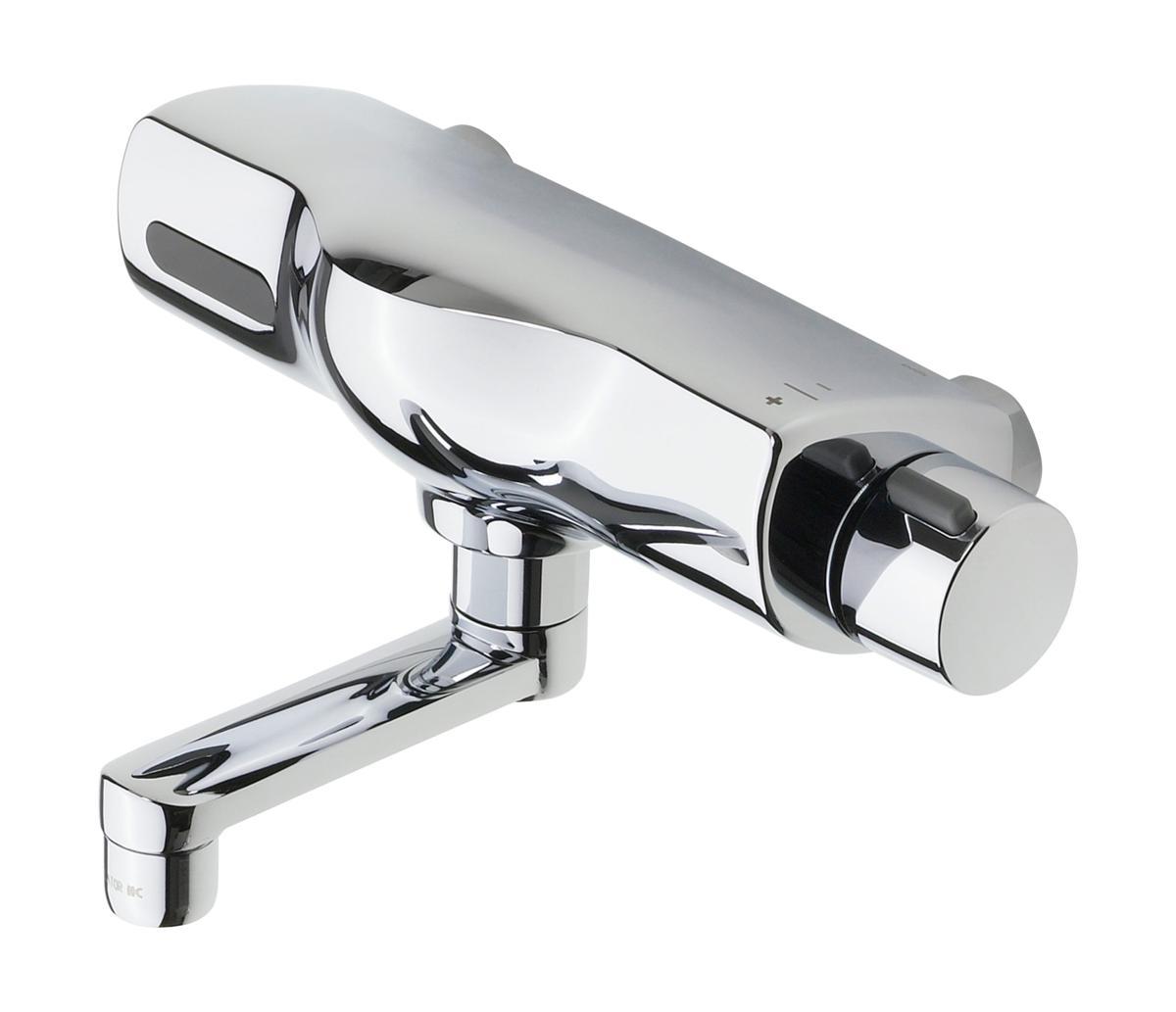 Kosketusvapaa pesuallashana, jossa on kääntyvä juoksuputki ja poresuutin (6 l/min. virtauksenrajoitin). Paristokäyttöinen 6 V. Lämmönsäätökahvassa on lämpötilan rajoitin, joka voidaan ohittaa nappia painamalla. Hanassa on roskasihdit ja yksisuuntaventtiilit.