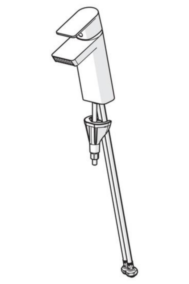 Pesuallashana, jossa kiinteä juoksuputki ja joustavat kytkentäputket. Uusi vesiputousporesuutin antaa vedelle kiehtovan, timantinmuotoisen virtauksen.