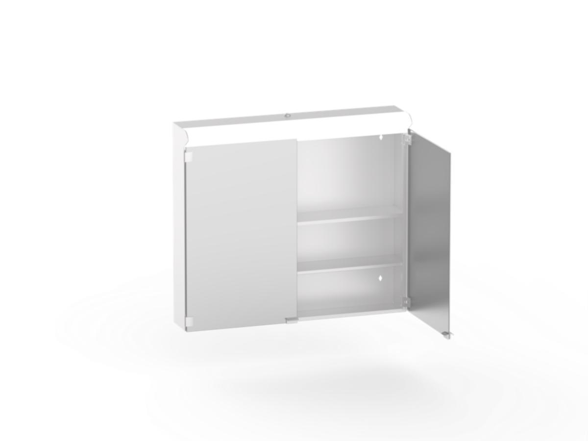 Polarian kotimainen peilikaappi on kestävä valinta, joka ei roiskevettä pelkää, sillä jauhemaalattu teräs kestää erinomaisesti kosteat olosuhteet. Kaksipuoleisten peiliovien takana on hyvin säilytystilaa.