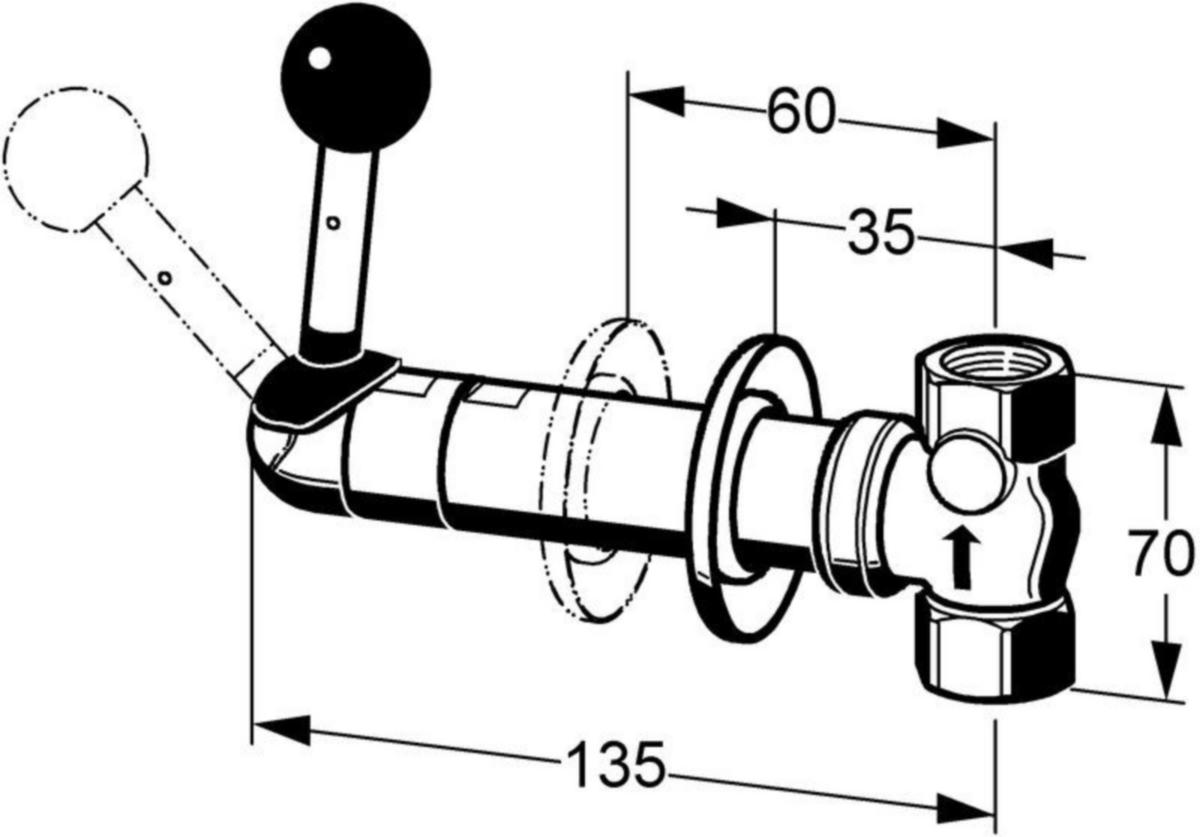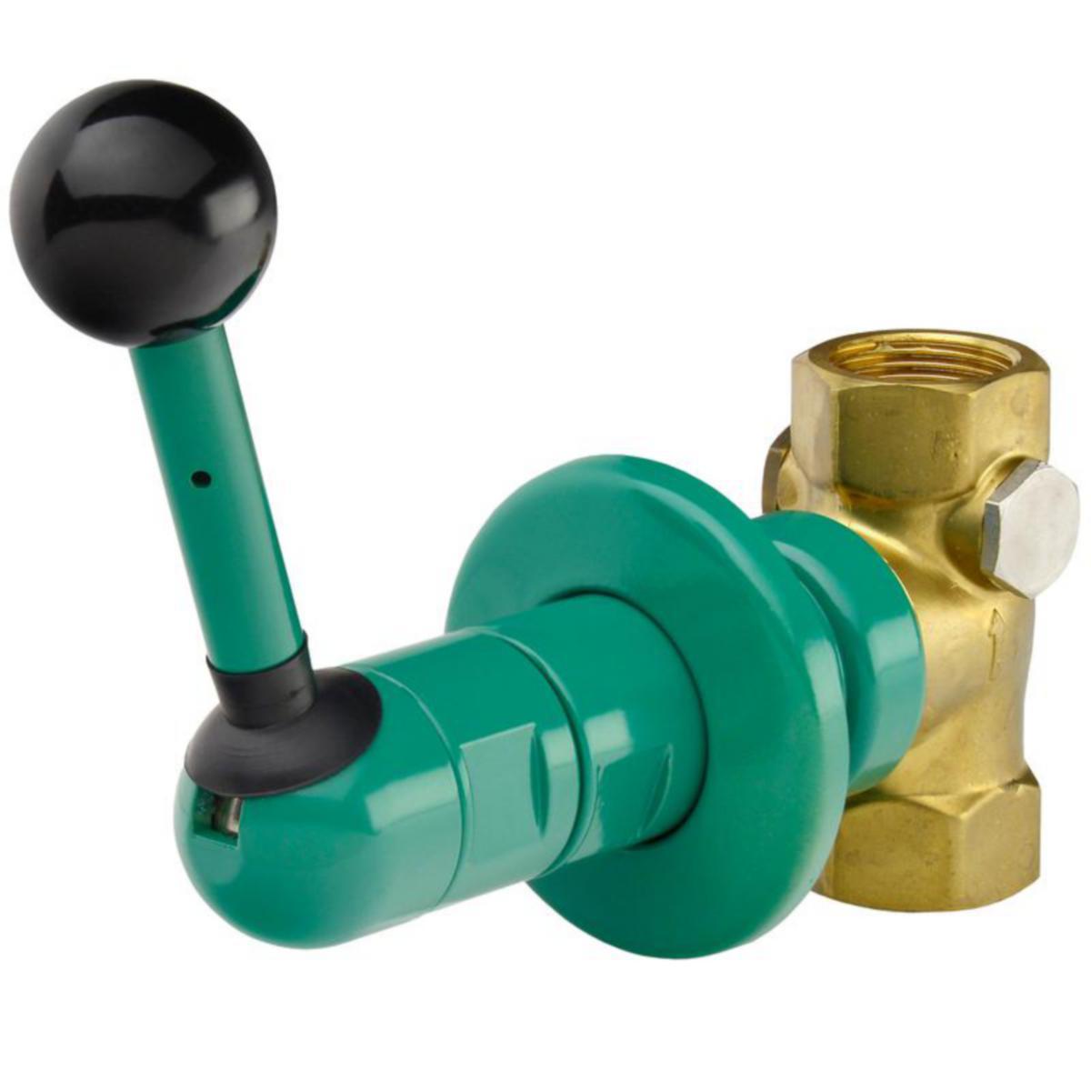 Hätäsuihkun venttiili rosetilla DN 20 pinta-asennukseen viemäröintiläpiviennillä, tulpattu. Manuaalikäyttöinen sulkukahva. Hätäsuihku -symbolitarra (ISO 3864, Osa 1) sekä käyttöohjeet.uctions, Vihreä, EPS pinnoitettua messinkiä (RAL 6032). Täyttää EN 15154, Osa 1 vaatimukset. Keskeytymätön virtaama n. 60 l/min 1 barin paineessa. Asennussyvyys 35 - 95 mm, liitos G 3/4 B.