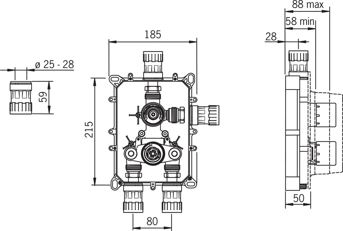 Piiloasennusosa termostaattiselle amme- ja suihkuhanalle. Hanassa on kaksi ulostuloa, roskasihdit ja yksisuuntaventtiilit. Tuote sopii pintaosille: Oras Optima 7188 ja Oras Cubista 2888.