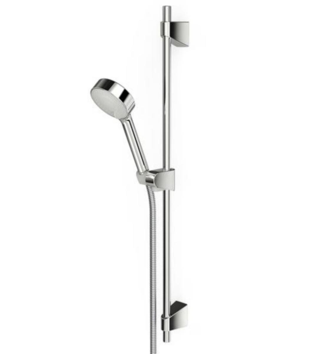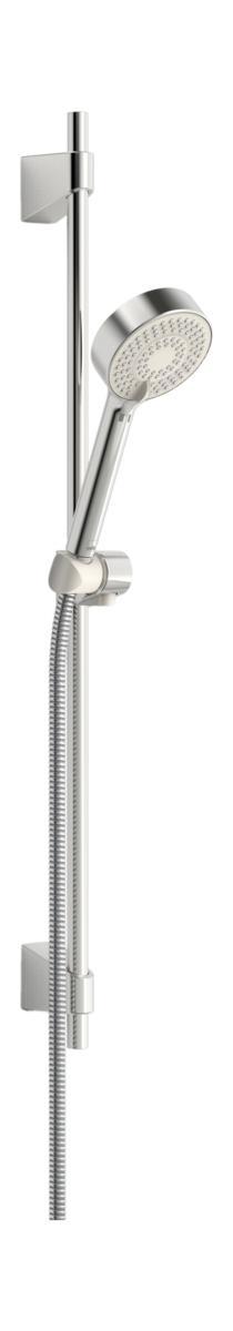 Oras Apollo -suihkusetti, joka sisältää käsisuihkun (ø95 mm), säädettävän suihkutangon (max. 720 mm) ja suihkuletkun (1750 mm). Käsisuihkussa kolme säätövaihtoehtoa, joista yksi on vettä säästävä EcoFlow.