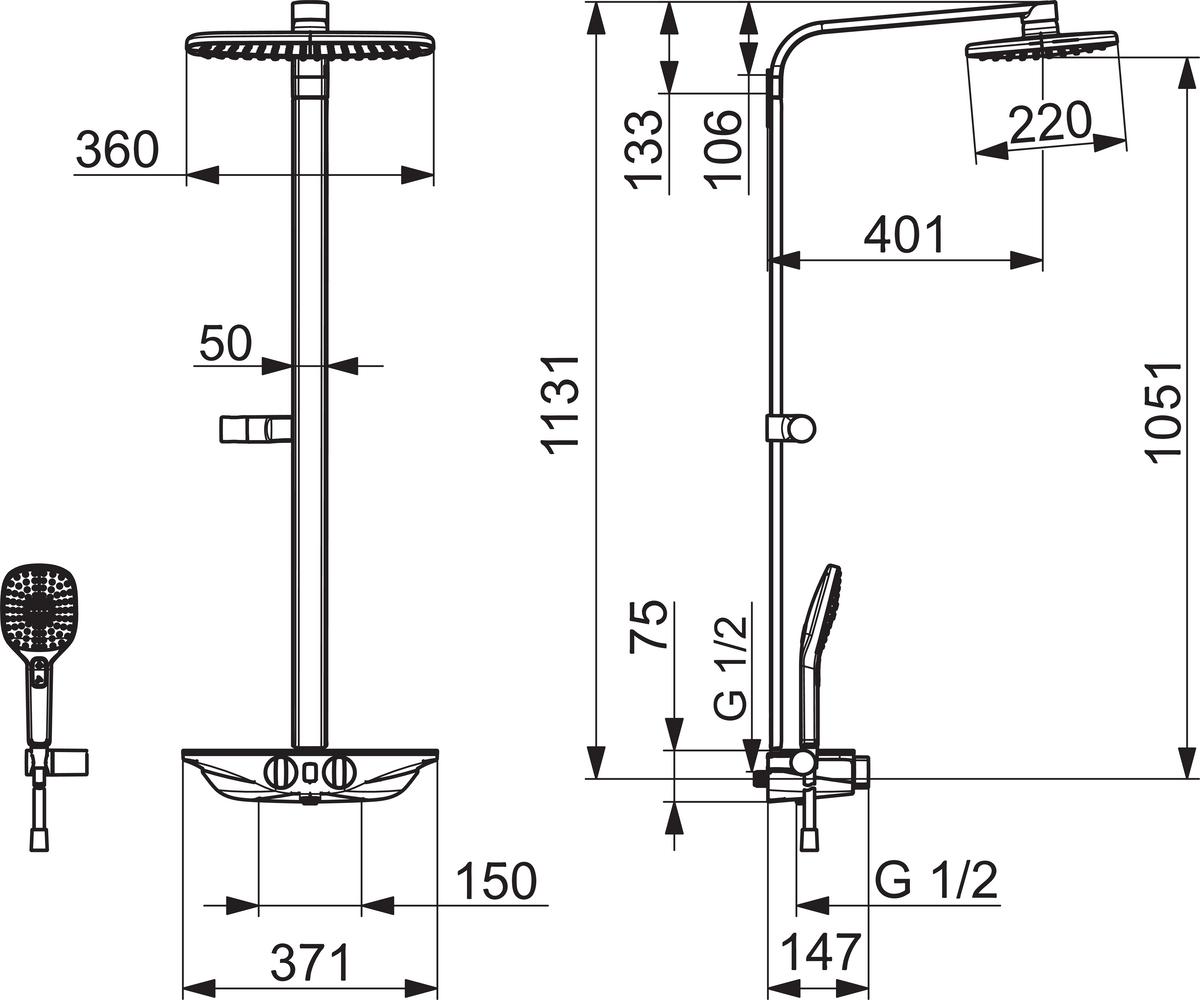 Termostaattinen sadesuihkuhana, jossa Wellfit-kehonhuoltotoiminto. Iso kattosuihku (360 x 220 mm) ja käsisuihku. Hanan päällä tilava, turvalasista tehty hylly. Wellfit-kehonhuoltotoiminnon ohjelmia voidaan yksilöidä Oras App -sovelluksen avulla. Helppokäyttöiset kahvat ja vaihdin. Lämpötilanrajoitin kahvassa. Oras Hydractiva Style -käsisuihku, jossa kolme toimintoa. Sisältää seinäkiinnikkeen. Hanassa on roskasiivilät ja yksisuuntaventtiilit. Valkoinen.