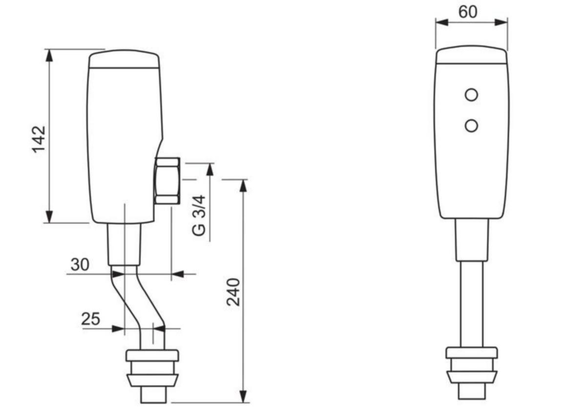 Kosketusvapaa urinaalin huuhtelulaite vaihdettavalle kytkentäjohdolle. Paristokäyttöinen 6 V. Laitteessa on roskasihti ja huuhteluputki, jossa läpivientikappale. Bluetooth-yhteyden ansiosta asetuksia on helppo seurata ja muuttaa.