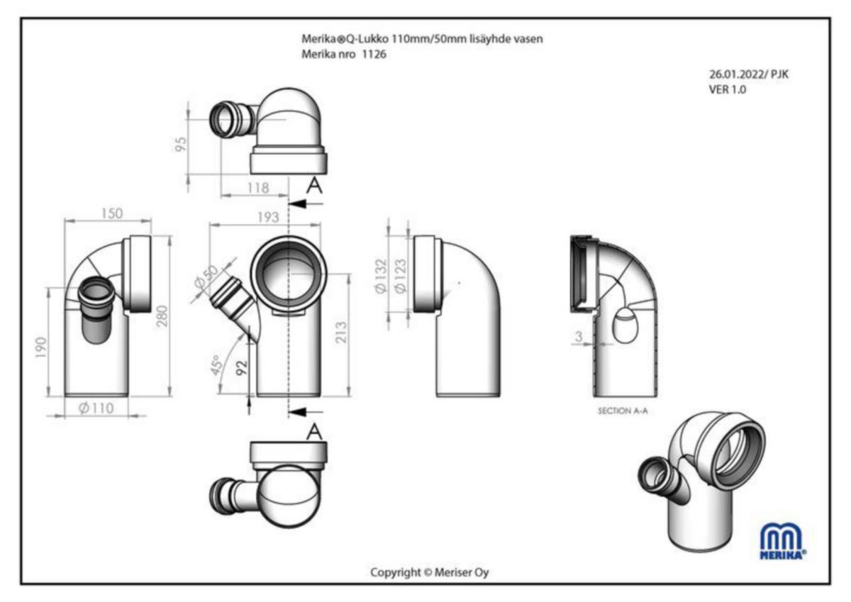 - Putken ulkohalkaisija liitäntä 1: 110 mm