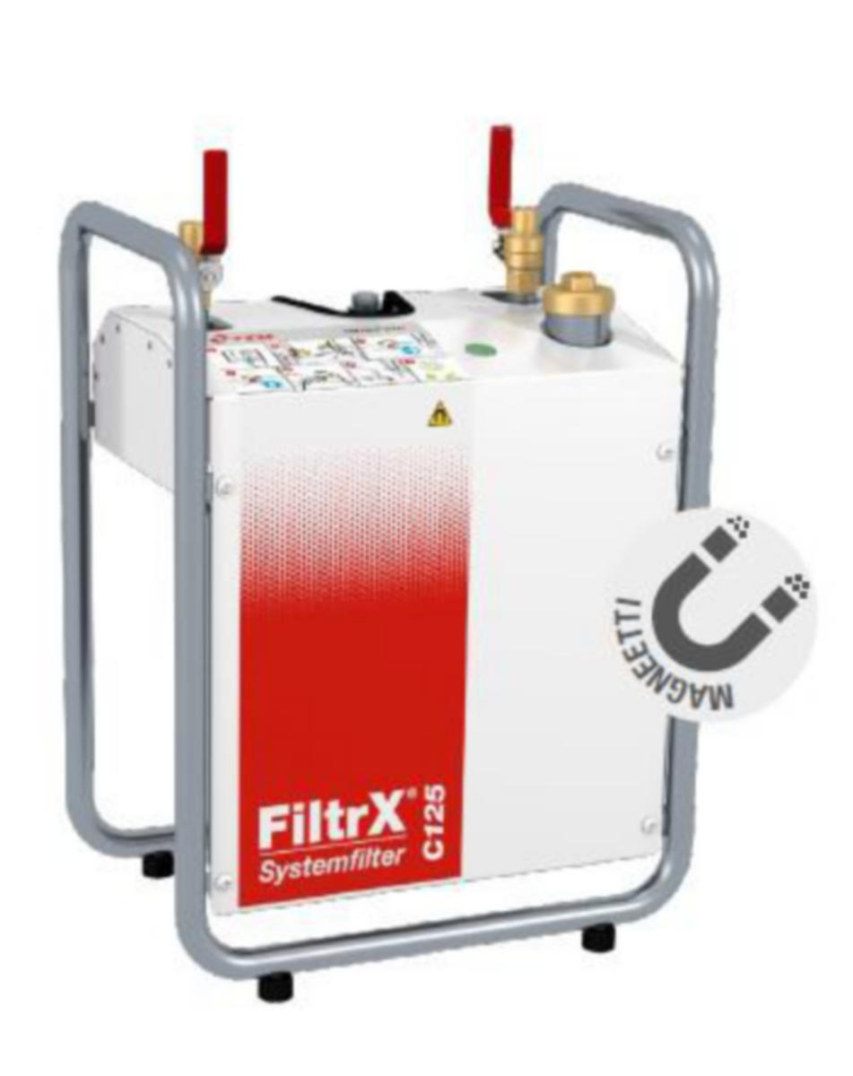 FiltrX® C125 -järjestelmäsuodatin poistaa tehokkaasti magnetiitin ja lian lämmitys- ja jäähdytysjärjestelmistä. Järjestelmäsuodatin estää magnetiittia ja likaa tukkimasta tai hankaamasta pumppujen, venttiilien ja muiden laitteiden osia, jotka muutoin voisivat jumittua ja vuotaa ennenaikaisesti poiskytkettyinäkin. FiltrX® C125 sopii LVI-järjestelmille, joissa on pienemmät putkimitat. FiltrX® käsittelee osittaista virtausta eikä vaikuta paineeseen tai virtaukseen järjestelmässä.