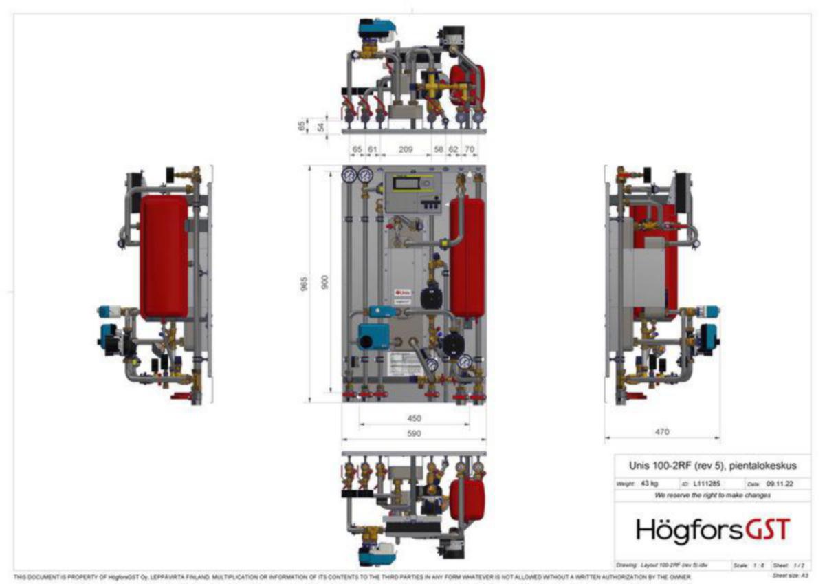 LÄMMÖNJAKOKESKUS GST UNIS 100-2RF, LATTIA/PATT.&KV